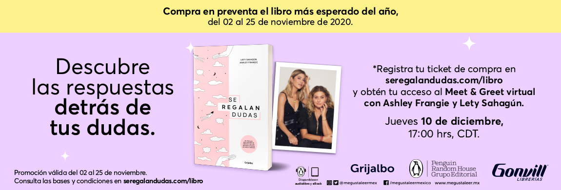 Compra el libro de Se regalan dudas de las autoras Ashley Frangie y Lety Sahagún en preventa y obtén tu acceso para el Meet & Greet virtual.
