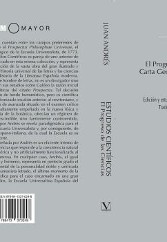 Las ciencias experimentales cuentan entre los campos preferentes de estudio de Andrés ya desde el Prospectus Philosophiae Universae, el Primer Programa Epistemológico de la Escuela Universalista, de 1773. El presente volumen de Estudios Científicos es pareja de uno anterior de Estudios Humanísticos, publicado en esta misma colección, y representa un momento más de la edición de la vasta obra del gran ilustrado y jesuita expulso, padre de la Historia universal de las letras y las ciencias e igualmente padre de la Historia de la Literatura Española moderna. Andrés, científico al igual que hombre de letras, no es un divulgador sino un ideador que estableció en sus estudios sobre Galileo la razón inicial de las decisiones programáticas del citado Prospectus. Tal decisión estaba guiada por un criterio de fondo humanístico, pero es científica y por ello necesitada del polemizado escalón anterior al newtoniano, y venía exigida por un espíritu de avanzada situado en el examen crítico de la idea de progreso y altamente empeñado en la nueva física y astronomía, que, a diferencia de la botánica, ofrecían un régimen de pensamiento no sólo imprescindible sino fuertemente controvertido. La epistemología propuesta por Andrés se revela paradigmática para el régimen conceptual de la Escuela Universalista y, por consiguiente, de la Ilustración hispánica e hispano-italiana, de la cual la Escuela es su manifestación más sobresaliente. La organización del saber diseñada por Andrés es un eficiente intento de comprensión global de las ciencias que responde a la coexistencia natural de las mismas, de razón histórica y no artificialmente funcionalizada al modo de la Enciclopedia francesa. En cualquier caso, Andrés, al igual que sus compañeros Hervás y Eximeno, representa en perfecto grado el último gran momento occidental de la personalidad doble y unificada del científico natural y del humanista letrado, el último momento de la filosofía clásica y enciclopédica para el caso encarnado en una gran escuela cristiana de ilustrados, la Escuela Universalista Española del siglo XVIII.