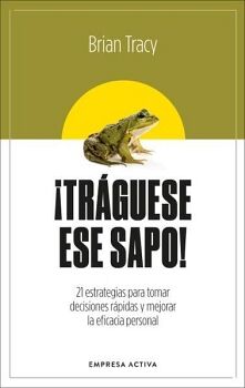 Más de dos millones de ejemplares vendidos y traducido a 40 idiomas, ¡Tráguese ese sapo! Es uno de los clásicos de la gestión del tiempo y la productividad. En esta nueva edición revisada y adaptada a las nuevas tecnologías, Brian Tracy nos vuelve a sorprender con sus consejos sencillos, fáciles de aplicar y útiles desde el primer momento. Sencillamente no hay tiempo suficiente para hacer todo lo que figura en nuestra lista de cosas pendientes. La gente que tiene éxito sabe que es imposible hacerlo todo. Pero lo que es determinante, es saber cómo priorizar las tareas, a fin de completar cada día las más importantes. Según un viejo dicho, si la primera cosa que tiene que hacer cada mañana es tragarse un sapo, entonces le queda la satisfacción de saber que eso probablemente sea lo peor que hará en todo el día. Brian Tracy ataca directamente los factores que determinan una eficaz administración personal del tiempo: decisión, disciplina y resolución. Detalla veintiún pasos lógicos, acompañados de ejercicios específicos, que le ayudarán a terminar con la postergación de las tareas importantes hoy mismo y a definir sus objetivos y metas globales.
